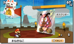 Paper Mario: Sticker Star makes stickers the star of gameplay. Instead of selecting like jump or fireball, players pull out stickers to attack. A demo with Mario using a fortune cat sticker squishing a goomba was shown during Nintendo Direct.