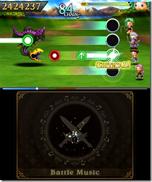 While many people rushed to play Hyrule Warriors or Smash Bros. over at Nintendo’s booth on the E3 show floor, I rushed straight to the Square Enix booth on the opposite side of the convention center. That’s not something I thought I’d ever do, but I was excited—excited that my favorite rhythm game was getting polished up the way it deserved! While I could talk about the spells my characters were casting and the items they were using, I’d much rather talk about the things that ACTUALLY make Curtain Call a better game. If someone’s telling you it’s “the character’s using Haste,” they’re wrong. If it’s the “221 songs on the game,” they’re dead wrong. Simply put, it’s the subtle changes to the note-striking system that make the Curtain Call the definitive Theatrhythm title. For those that haven’t played the first Theatrhythm, there are three types of notes: single-tap red notes, arrow notes that have you flick the touch screen in a specific direction, and hold notes. Haptic feedback is everything when it comes to touch-based rhythm games, and Curtain Call nails it. It’s a bit hard to describe in words, but I’ll try my best, starting with visual changes. Notes have a more defined outline in Curtain Call that makes them feel more tangible, or solid. In the last Theatrhythm, feature zone sections of battle songs and Chocobo sections of field songs would turn a solid silver and gold, respectively. In Curtain Call, the notes maintain their original color and borrow a silver or gold outline – allowing the notes to maintain the color originally assigned to it while also letting you visually categorize them as “special” sections.
