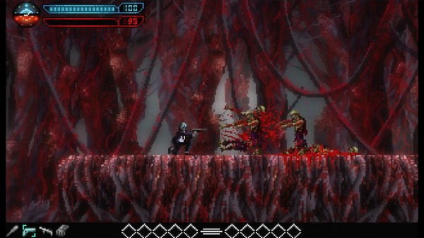The protagonist, an assassin known as The Artist, has access to multiple weapons on his bloody quest, using beam swords, lasers, flamethrowers, and pistols as he platforms his way across the game’s 12 chapters, cutting down the game’s multiple enemies and bosses at high speed.