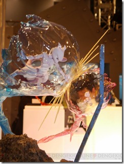 A D-Arts Mewtwo can also be seen in a very menacing pose while preparing to strike with a Shadow Ball. In another shot, Mewtwo can be seen fighting Mew, but it is currently unknown if Mew will be available as a separate D-Arts figure or will be bundled with Mewtwo. According to information from Tomopop and JEFusion, D-Arts Mewtwo is planned for a March 2013 release and will cost 3,800 yen. For more pictures from the event, Dengeki has quite a collection of them.