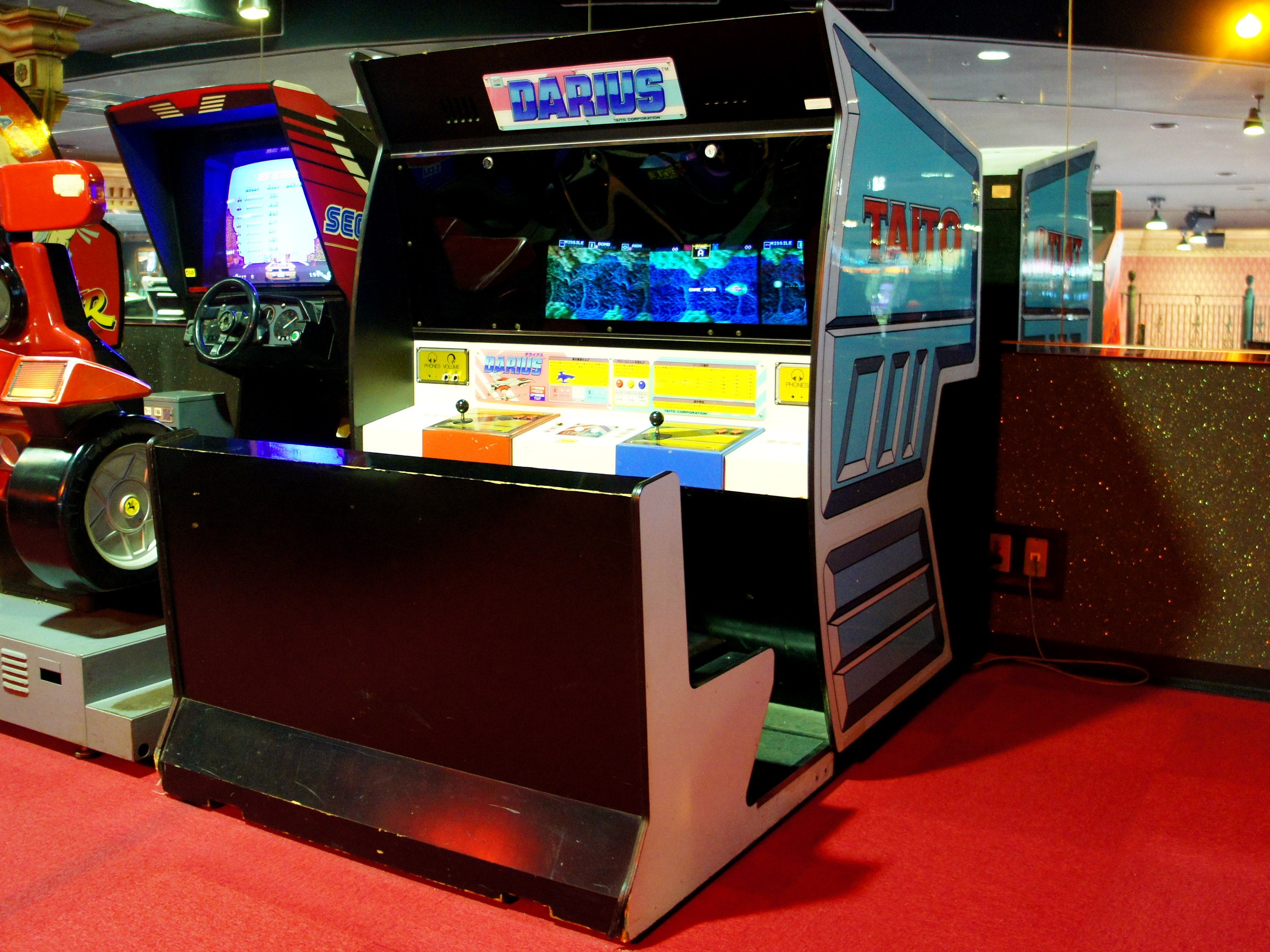 In a recently translated interview on Darius, several of the developers talk about what it took to make a game that was groundbreaking in several aspects, including the use of three screens, subwoofers under the seats, as well as why the bosses are all fish-themed. [Thanks, Shmuplations!] Here are some highlights: To start things off, where did the idea for that 3-screen cabinet come from? Takeki Nakamura, hardware engineer: “We were already familiar with the technique of using mirrors to visually connect two monitors. I believe one of our older games, Wyvern F-O, used this trick. We surmised that it should be possible to do the same thing with three monitors, so we tried it out. That hardware idea really came first. After we did some tests and saw it was indeed feasible to seamlessly link three screens, then we asked ourselves what kind of game would best fit a 3-screen format.” Akira Fujita, planner: “At first we thought we’d link the monitors in a vertical (tate) orientation, or perhaps turn them on their side and stack them vertically (yokotate). But our eyes are laid out horizontally on our face to begin with, so we thought that vision-wise, a horizontal “cinema-scope”-like arrangement would be more effective.” Where did the idea for the fish battleships come from? Fujita: “That was my idea. Before Darius, I had this idea of making a STG where you would fight a battleship at the end of each stage, and once we decided on the 3-screen setup, I suddenly had an additional insight: since mecha/machine designs have already been used a lot in STGs, using fish could be a really interesting way to spice things up…” Junji Yarita, designer: “I worked as a character designer (bosses and enemies) on Darius. I sketched a number of different mecha-fish designs to see what everyone liked, and we went from there.” Fujita: “We actually thought up 26 different battleships, and our artists created art and designs for all of them. There was an angelfish design, a moray eel, and some really bizarre crazy ones too. Unfortunately, due to time constraints, we ended up whittling it down to only 11 different battleships for the game.”