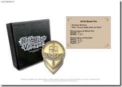 - ACID Medal Pin – Join the Anti-Chimera Interception Division with the ACID Medal Pin! Crafted in antique bronze, this symbol of the Special Force Valkyrie team comes in a sleek box with protective cushioning. On the back are two lapel pins so you can rest assured this will be as secure as any military headquarters.
