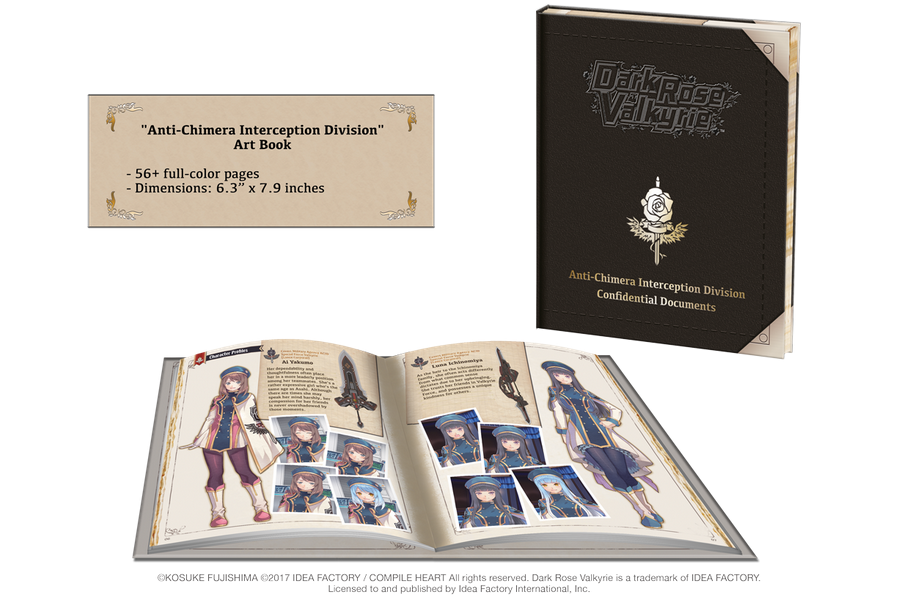 - “Anti-chimera Interception Division” Art Book – Review the Special Force Valkyrie team and study the Chimera through the hardcover “Anti-Chimera Interception Division” Art Book! View the background images, rough sketches, and many more! Over 56 pages of knowledge that will be essential in order to battle the looming danger of the Chimera Virus.