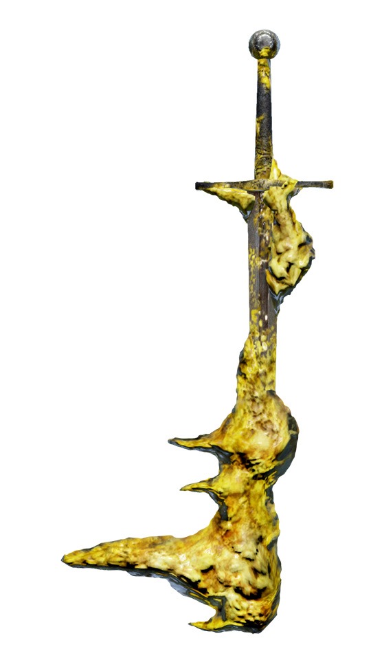 The Sulfur-Crusted Long Sword and Sulfur-Crusted Shield are items you can get from Bic Camera, Kojima, Furuhon Ichiba, and Softmap.