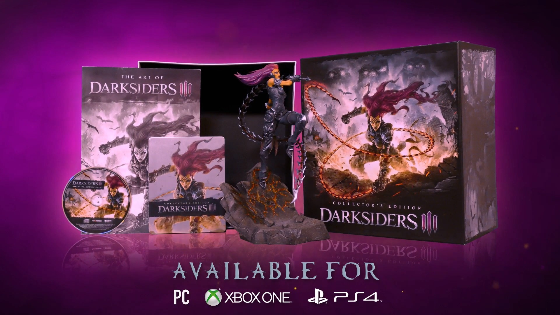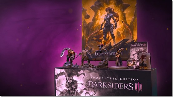The Darksiders III Collector’s Edition is $149.99. It comes with a copy of the game, a Fury 25CM 10” figure, an artbook, a Steelbook case, a soundtrack CD and an exclusive set of armor that changes the way Fury looks.