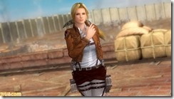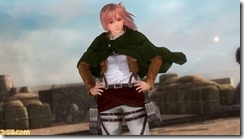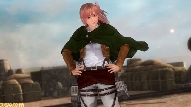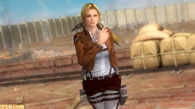 Dead or Alive 5: Last Round’s Attack on Titan DLC is now available and a bunch of new screenshots have been shared by Famitsu showing off the new crossover items. The new DLC includes an Attack on Titan-inspired costume for every character, as well as a new stage featuring Wall Rose and the Colossal Titan. You can get the complete set of costumes on PSN and Xbox Live for $39.49, or buy them separately at $2.99 each. The stage featuring the Colossal Titan costs $4.99.
