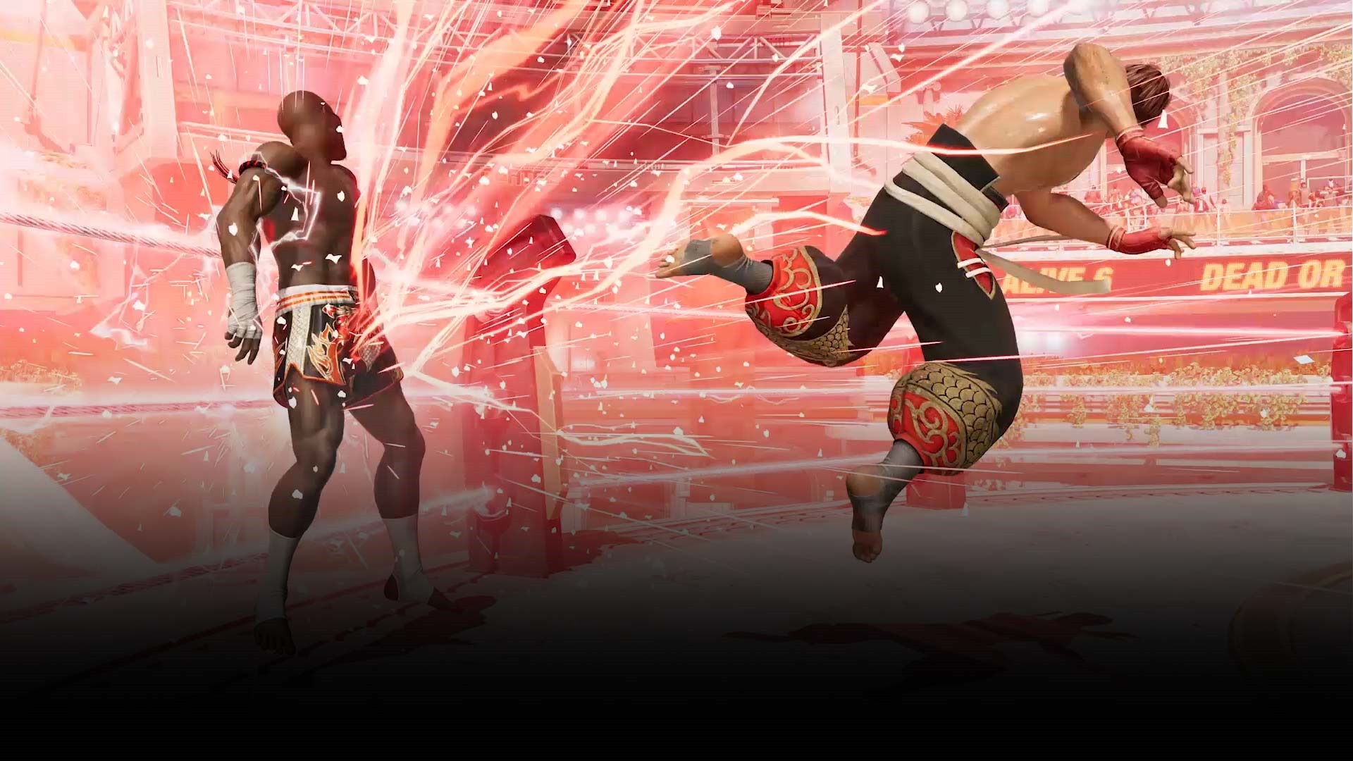 Main stage of the 6th Dead or Alive Tournament. The latest stage specialized for martial arts. Watch out for explosions when the ring ropes are touched! The Throwdown