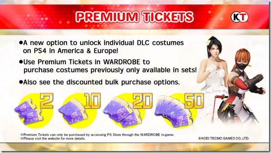 For players in North America and Europe, there’s a new option to unlock individual DLC costumes on PS4. You can purchase costumes that were previously available in sets by using Premium Tickets in Wardrobe. There are discounted bulk purchase options, too.