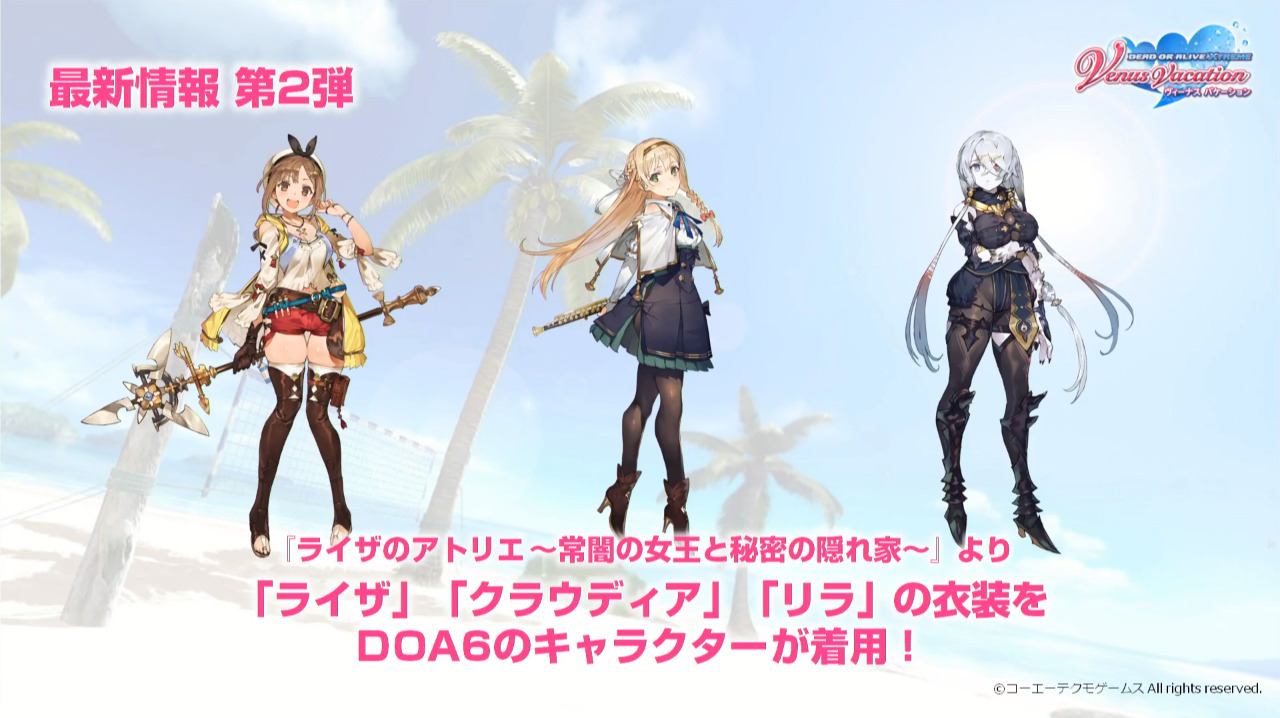 Koei Tecmo revealed Dead or Alive 6 and Dead or Alive Xtreme: Venus Vacation’s Atelier Ryza collaborations in a recent livestream.