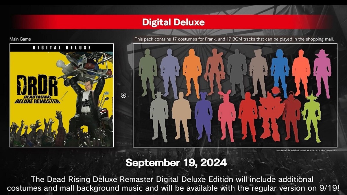 Dead Rising Deluxe Remaster will come out on the PS5, Xbox Series X, and Windows PC via Steam on September 19, 2024. This is the digital version.