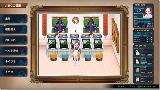 This new mode is an idea suggested by ESP Ra.De. character designer Junya Inoue. Essentially, you clear small missions in order to earn Fukibiki Tickets to buy and decorate Irori’s room.