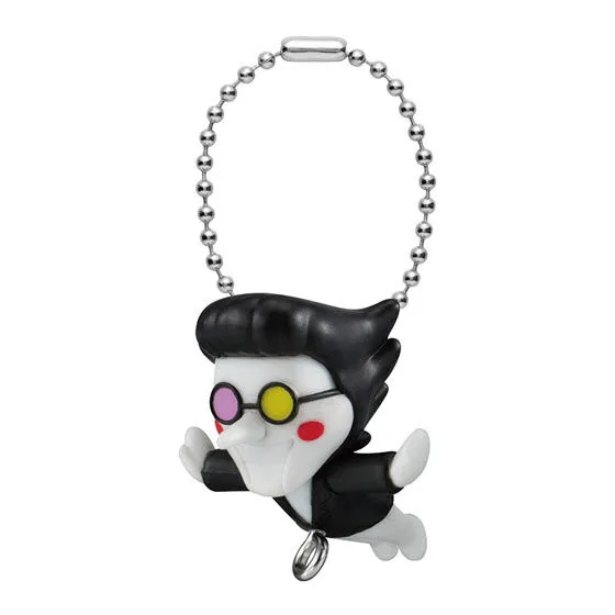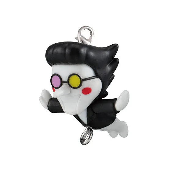 While there are five characters appearing in this Deltarune Tsumande Tsunagete mascot keychain gacha collection, there are two styles of each present. This is because the Tsumande Tsunagete line involves being able to connect characters to have a dangling chain of them. So each one is randomly available either with a ball chain keychain at the top or lobster clasp. Every one of them has what is basically a jump ring attached to the bottom so another charm with a lobster clasp could be connected. The options in this line are Ralsei both with and without his hat, Lancer, Jevil, and Spamton. Susie and Kris don’t appear, though they were part of the last rubber keychain line Bandai Namco released.
