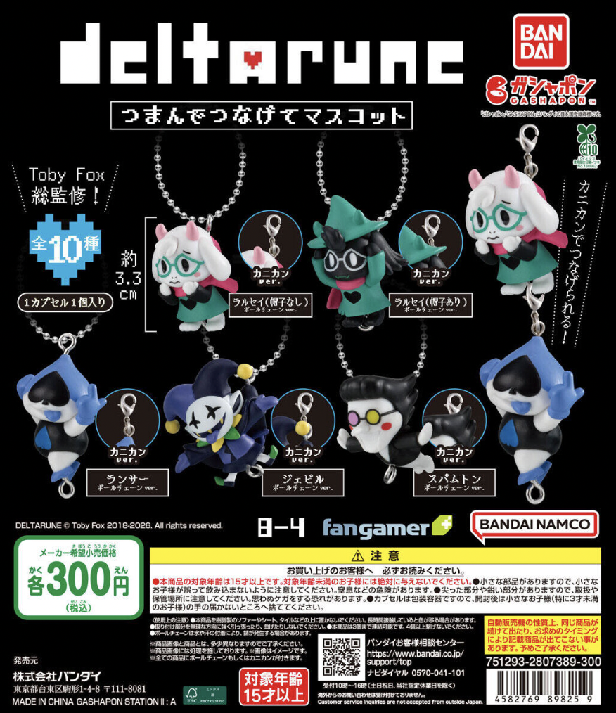 Bandai Namco announced a new round of Deltarune Tsumande Tsunagete mascot keychains for Japan, and there are two versions of Ralsei in this set. They will appear in Gashapon capsule machines starting the week of April 5, 2026. It will be 300円 (~$2) per try. There’s no North American release window for this set yet, but since the capsule rubber mascot keychains did appear worldwide, we should eventually see these everywhere.