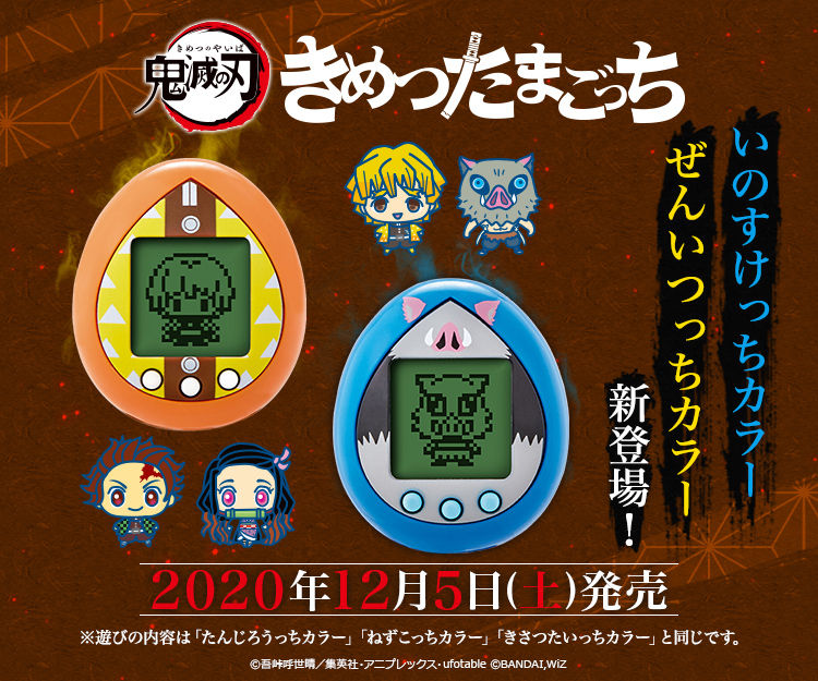 The Demon Slayer Tamagotchi will get two new models for Zenitsu Agatsuma and Inosuke Hashibira in Japan on December 5, 2020. The “Zenitsutchi Color” and “Inosuketchi Color” Demon Slayer Tamagotchi models are available to pre-order for 2,530 yen until November 24, 2020, at 11:00 pm JST. [Thanks, Hobby Watch.]