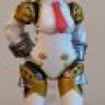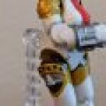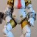 So, in the case of my impulse Desktop Army purchase, I got the Persona 4 Arena version of Aigis. She a launcher that attaches to her shoulder and an open smile, compared to the Persona 3 and Persona 3 FES variants in this assortment. She’s about three inches tall, as promised. Due to the shape of her feet, she can’t stand on her own. There are optional parts to remedy that, but they didn’t help my figure. However, her clear stand, once assembled, allows for quite a few positions.