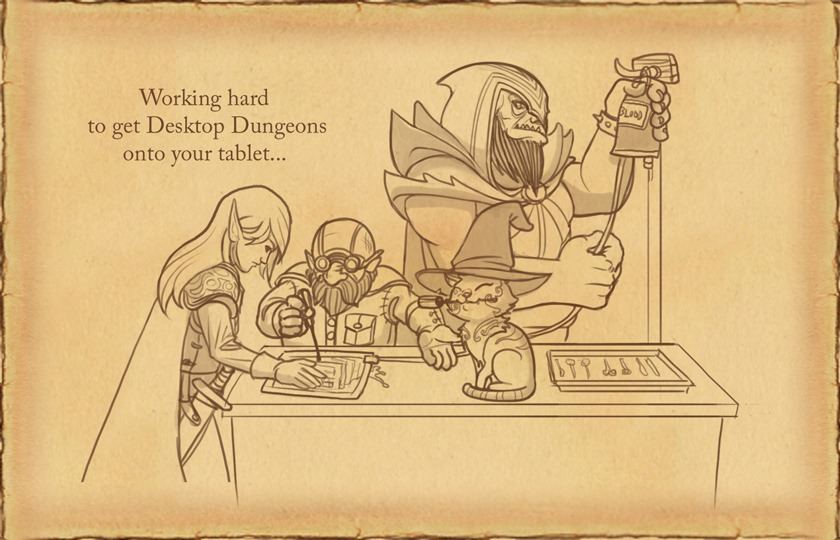 QCF also notes that while you’ll only be able to play the Daily Challenge once per day (it’s reset at midnight GMT) you will be able to have another go on your iPad or Android tablet as the seed on PC is different from the one generated on tablets. Lastly, QCF said that the tablet version of Desktop Dungeons will be along shortly. It’s a full one-to-one port of the game, albeit with that new streamlined interface mentioned earlier. It’ll also synchronize with your cloud-saved kingdom so you don’t have to lose progress across platforms if you don’t want to.