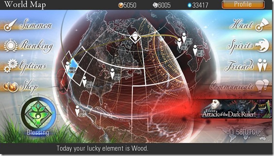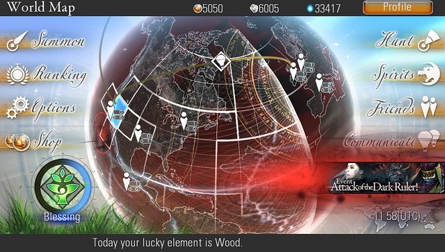 I’m not really sure how to start talking about Destiny of Spirits. Usually, when I play a game, I develop some kind of strong feelings about it. Even games I hate, like Aliens: Colonial Marines, are able to amuse me in some way. It’s odd to encounter a title that leaves me feeling absolutely blank, and yet, here we are. For the first time, I have absolutely no feelings, good or bad, about Destiny of Spirits. I suppose the best I can say is that Destiny of Spirits reminds me of Puzzle & Dragons, which I enjoy from time to time, but doesn’t hook players in the same way. There’s the slimmest of stories in Destiny of Spirits. Chaos Spirits are running rampant around the world. The only way to reclaim areas and is to summon peaceful elemental spirits and wipe out the evil ones one battle at a time. Once an area is cleared, you can travel to surrounding areas and start securing it. Said battles are turn based. You’ll click on an area of Destiny of Spirits and go into there. Indicators will show available battles. Tapping one will let you select it for battle. You get a certain number of points, which gradually increase, and determine how many spirits you can take with you. So, as an example, you could summon three weak spirits or one strong one and another weak. Spirit points can be used to rent a random stranger’s spirit for battle as well. Once a roster is picked out, battle begins.