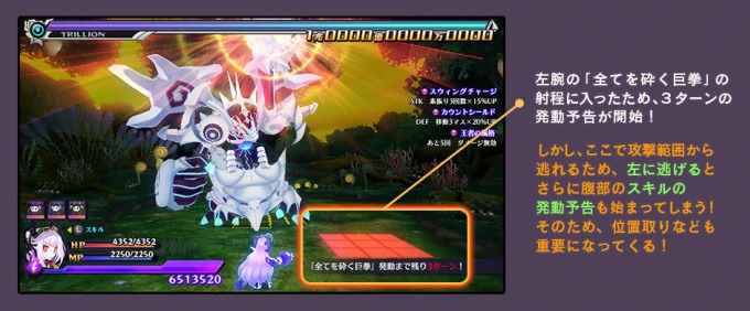 trillion_basic_yosoku_150203 All of Trillion’s moves will have certain notifications to go with them. It’ll show the skill, its attack range, and the number of turns until it activates. From there, you’ll have the choice to escape, defend, or fight it off with a skill.   trillion_basic4_150203 While you might not be able to take out Trillion and his one trillion HP right away, you’ll get to destroy parts of his armor that have their own sets of HP. By destroying other parts of Trillion, you’ll be able to momentarily stop him from using skills, making it a key part of fighting him off.   basic_devil Fighting Trillion will require a lot of work and non-stop attacking. In order to help out, the Demon Lords will also have their own servants to come help out in battle. While we still don’t know exactly how they’ll help out, it sounds like we’ll need all the help we can get.   basic_omoi By establishing new memories among the Demon Lords, you’ll create new powers of bond called “Feeling Points”. While fighting Trillion, these points can replace HP and MP when taking damage or using skills, so it’ll be a good idea to stock up on these as much as possible.