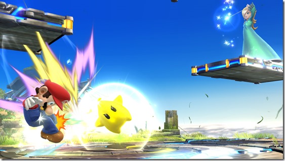 Rosalina and Luma can be right by each other or set farther apart. They’re both controlled by the player, so a smash attack can be done from far off. Remote control all the way!