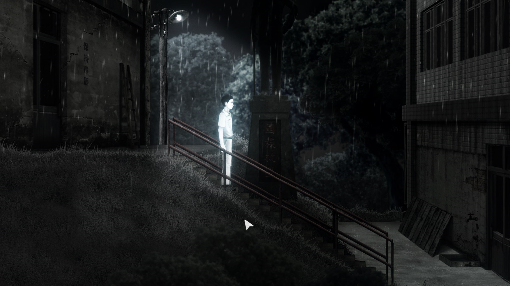 The visuals were affected by this setting in several ways. The characters, for example, used only black and white color to resemble people from old photographs, which also added suspense to the story. Also, we created the low-saturation scenes to enhance that feeling of gloom and despair.