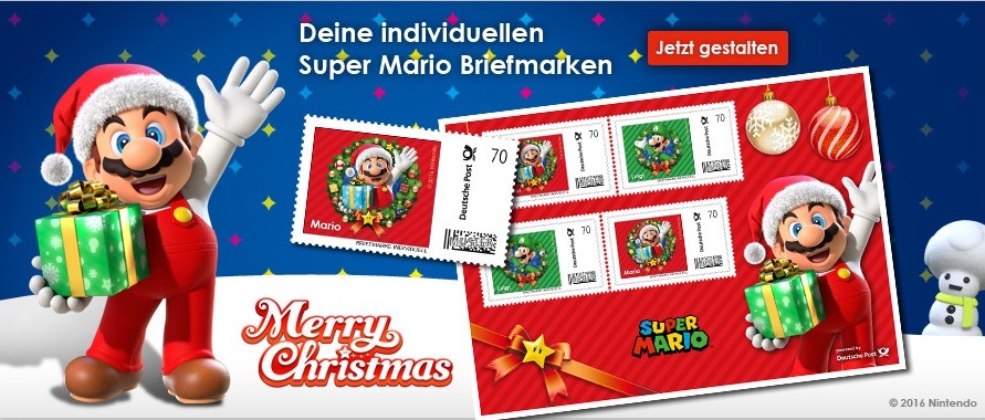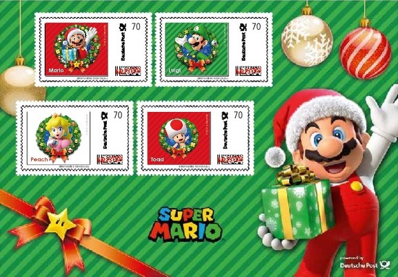 People in Germany will have a new sort of stamp to choose from this holiday season. The Deutsche Post is now selling a set of Christmas-themed Super Mario stamps.