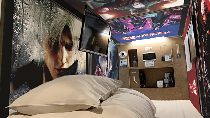 Capcom’s Devil May Cry series will decorate a capsule hotel in Nagoya, Japan, throughout April 2022. The Anshin Oyado Premier Nagoya Sakae capsule hotel will work with Capcom to provide a specially themed room and various merchandise amenities. People visiting Nagoya can purchase the collaboration package at 9800 yen (~$80.55) for a stay between April 1 and April 30, 2022. This package will let the buyer receive a couple of Devil May Cry-decorated items. The hotel will give a random postcard featuring key art from one of the five mainline titles. The buyer can also choose a design for an acrylic calendar based on Devil May Cry 5.