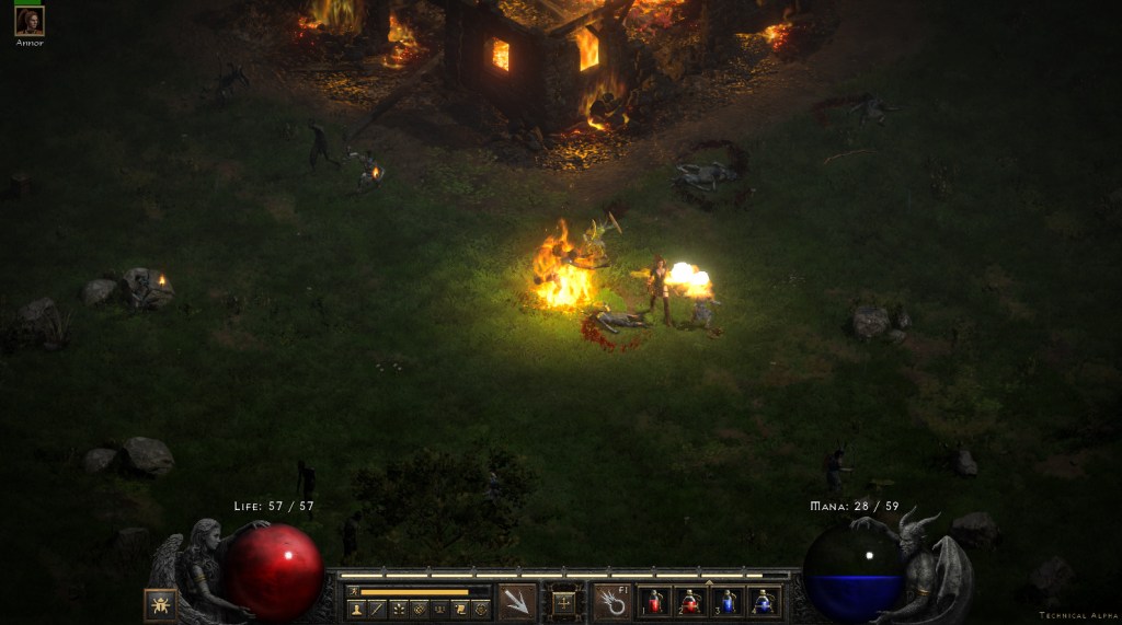 The Lord of Hell returns in Diablo II: Resurrected through a join effort between Activision Blizzard and Vicarious Visions. Rumors of the remaster circulated for years, and in 2021 players will be able to return to the world of Sanctuary once again to relive one of the most formative games of its era. Blizzard allowed for players to participate in a technical alpha in April 2021, which provided a first look at how the game will effectively function as both a remaster and as a more polished version of what many consider an otherwise perfect game. Diablo II: Resurrected a near perfect crystallization of nostalgia and a product of an industry banking on the sentimentality of an audience to pull them back into titles that otherwise feel dated by comparison. I mean in this and both the best and worst ways possible. I was initially skeptical watching the announcement trailer for this remaster. However, the moment I loaded the game up I was immediately overwhelmed by fondness for a game I had spent hours upon hours playing. It’s hard to write about this game without feeling an immediate bias, as a bulk of my childhood was spent connecting with friends through the archaic Battle.net servers of old. The environments are still moody, with dilapidated buildings scattered throughout the first act of the game offset by graveyard and dark caves. Everything is washed in dark colors, muted and drained of any vibrancy for the most part, which lends itself well to the dark fantasy title. Players can easily toggle between this new upscaled version and a legacy mode, which is effectively the 2001 version of the game. This includes the original character animations, effects, and even hit chances. This can be done with a single press of a button. It seems to skirts the line between being an outright remaster and an updated port in this early build. Even the music changes between modes, which was pleasantly surprising. Vicarious Visions implemented some arguably essential, quality of life features while retaining the essence of the original game, and these could be found in this alpha. Players can increase the font size for the various dialogue boxes when selecting Low Vision Mode, which I found to be essential since I wasn’t playing on a bulky CRT monitor anymore. However, you can adjust your resolution to recreate that feeling and make the UI then scale appropriately. Features like automatic gold pick-up, which you think would be standard in any click-and-loot title, are available to toggle on for convenience.