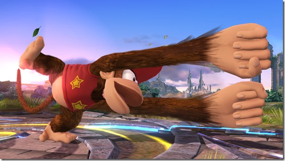 Diddy Kong will be a playable character in the new Super Smash Bros. for Wii U and Nintendo 3DS, and director Masahiro Sakurai says that his flexibility and reach have been increased for the new game, as illustrated in the screenshot below.