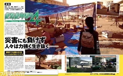 Details for this week’s Famitsu scoop on Disaster Report 4 Plus: Summer Memories have leaked, describing the ordeal of living at an over-capacity shelter in the midst of a disaster scenario. [Thanks, Hachima Kikou!] The school-turned-shelter is home to many people living harsh lives. The gymnasium has been turned into a living area, but isn’t large enough to accommodate everyone. As such, the protagonist will see people living on the sports field, or see a makeshift playground on the roof. People with cars parked in the school grounds bide their time and days inside their cars. The stress of living in a disaster environment is causing a variety of problems and arguments. Effort has been made to depict the situations in real life shelters. Cardboard boxes are used to separate a bit of private space for each family. The exit is open all the time so that people can run away if another earthquake hits. The swimming pool’s water, while undrinkable, is used to wash clothes and other things. There are even people lining up to use portable toilets, and irritated people waiting for their turn as well.