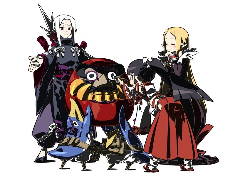 Nippon Ichi asked Himukai to be a guest illustrator for Disgaea 4 and drew this picture of prinnies lifting a Daruma.