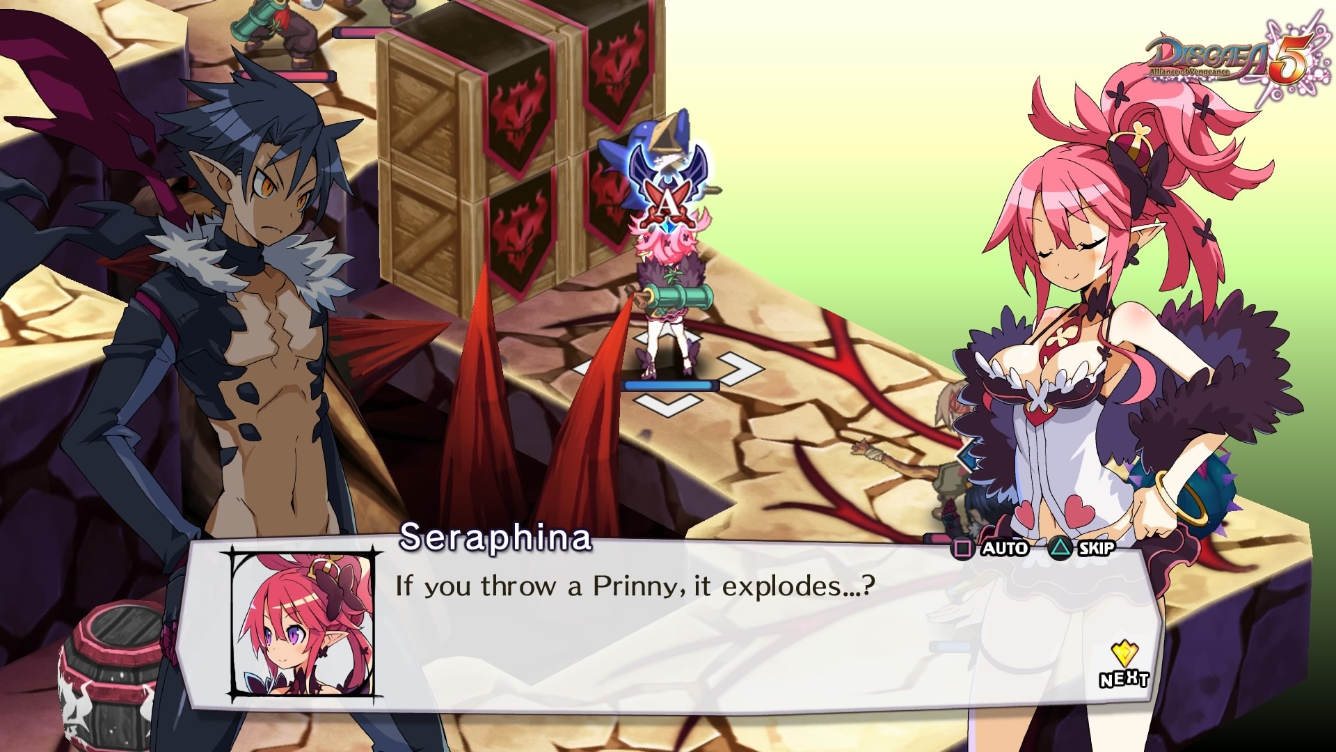 On a more lighthearted note, I appreciated the game’s wacky sense of humor, from the quips and banter between the main characters, to even things as simple as the oftentimes hilarious weapon descriptions. All in all, I feel Disgaea 5: Alliance of Vengeance was a great introduction to strategy RPGs for me. Longtime fans familiar with the series will of course enjoy what the title has to offer, but I believe even people as new to the genre as I was would be able to find the game accessible and fun if they are willing to have a bit of patience and apply some prudent thinking. Disgaea 5: Alliance of Vengeance will release for the PlayStation 4 in North America on October 6th and in Europe on October 16th, 2015.