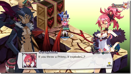 Disgaea 5: Alliance of Vengeance is the newest installment in the Disgaea series of strategy RPGs by Nippon Ichi Software. Having never played a Disgaea game, let alone a strategy RPG before, I was not entirely sure what to expect. However, the characters and world looked interesting and colorful, so I was eager to jump in and start playing. The game immediately thrusts you into the middle of a battlefield during a confrontation between the main characters and Demon Emperor Void Dark’s army of The Lost. The gameplay was initially easy for me to get into and learn, even without having any prior experience with tactical RPGs. The tutorials in the beginning are straightforward and explained well and it wasn’t long before I found myself tossing Prinnies left and right and clearing my first level, dood.