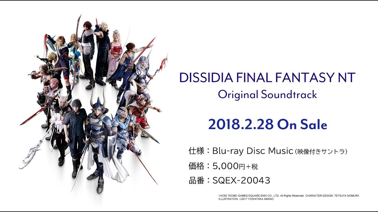 Dissidia Final Fantasy NT’s original soundtrack is being sold on February 28, 2018, and it will be in Blu-ray Disc Music format, with additional footage. You can check out the Dissidia Final Fantasy NT original soundtrack announcement video below: The soundtrack will include original songs for NT, remastered songs from the arcade version of Dissidia Final Fantasy, and arranged versions of legacy Final Fantasy songs. There are also MP3 versions of the tracks on the disc that can be ripped onto a Blu-ray compatible PC. Similar to the 30th Anniversary Blu-Ray soundtrack, there is additional footage to accompany the tracks. The Dissidia Final Fantasy NT Original Soundtrack will release on February 28, 2018, and will cost 5,000 yen + tax in Japan.