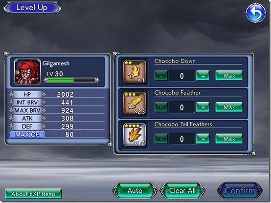 With people who are new, it is an opportunity to prepare a party of people you prefer a little faster. But, there’s a great use for them that any user can enjoy. in the game, you rank up by level up your characters. This increases your SP, which allows you to accomplish more in the World of Illusion area quests that let you get Artifacts with special skills for characters or bolster your summons. It also refills it when you level up. So, if you have some characters at lower levels and you run out, you apply some Chocobo Feathers as a refill. They are also great for when a character like Final Fantasy XIII‘s Sazh receives his 35 CP weapon (Spica Defenders), which buffs both his and another party member’s attack, critical rate, and max brave (BRV), while also boosting his own speed. It lets you take someone who is suddenly more relevant and use them.