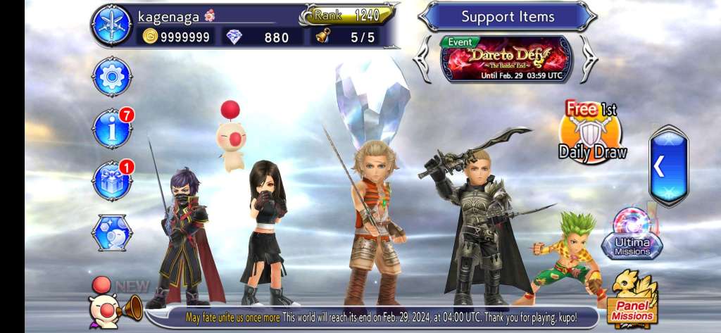 Dissidia Final Fantasy Opera Omnia is available for Android and iOS devices. Service will end in February 2024.