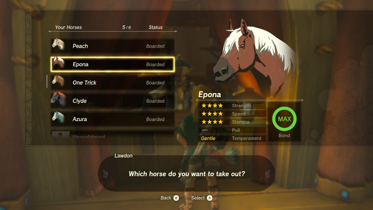 Only one thing carries over. You’ll still have all of your horses from the previous game waiting for you in the stables across Hyrule. This also includes Epona, if you acquired the horse via various means in the previous game. Likewise, I found the special Giant Horse from The Legend of Zelda: Breath of the Wild was still waiting for me at the stable once I reached one in Tears of the Kingdom. You can see how both were waiting for Link’s return in the screenshots below.