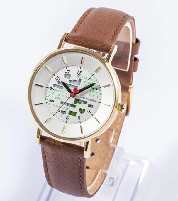 Super Groupies opened up pre-orders for Doki Doki Literature Club accessories and merchandise. Pre-orders will be available until 12pm JST on June 19, 2023. That would be 8pm PT/11pm ET on June 18, 2023 for those in the west. In total, Super Groupies will release six Doki Doki Literature Club items that draw inspiration from the four club members. There are four watches with designs based on Sayori, Monika, Yuri, and Natsuki. The watches also contain references to the game itself. For example, the face of Yuri’s watch is at an angle, much like how the backgrounds slanted in Yuri’s route. Another example is in the black pixels on Natsuki’s watch to emulate the pixels that would appear. Each watch costs 22,000 JPY, which is around $156.80.