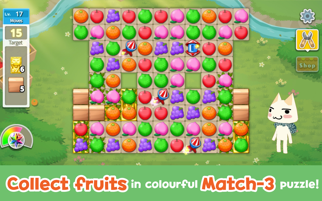 The match-3 puzzle game features over 300 stages. By taking on these stages, you’ll help revitalize the town by using various rewards such as furniture pieces earned from completing stages.