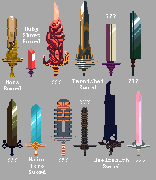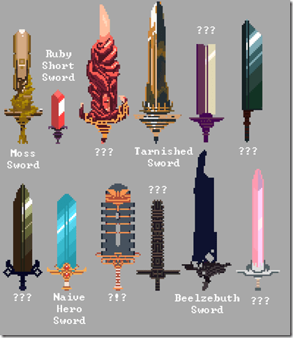 There are plenty more great-looking swords in the game too, as you can see in the image below, which was shared in Indie Game Enthusiast’s preview of the game.