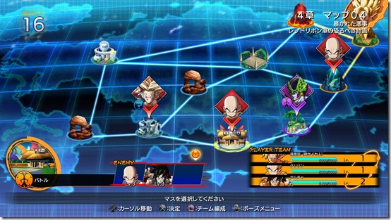 As previously detailed, in Story Mode an incident takes place that makes the Z Fighters to fall one by one. The above is a look at the story progress map.