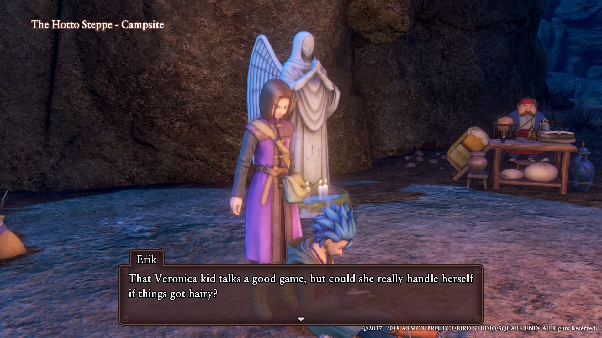 The camps are another fantastic element. In the field, you might find a campfire. Stopping by it allows you to rest, changing the time of day and restoring characters’ status. The campground also allows you to sometimes buy items from a shopkeeper, which can be helpful if you are running out of healing items or a Chimera’s Wing. There is a goddess statue, so you could save or handle important affairs away from town. These tend to be strategically places, so they often appear in the exact midpoint between important spots. Dragon Quest XI even takes the time to place some ahead of bosses.