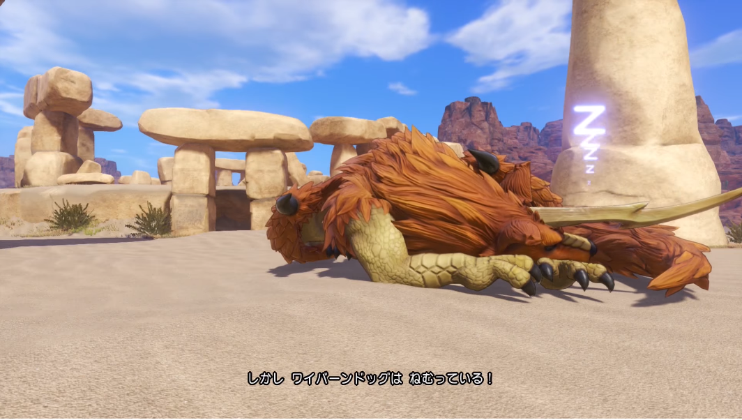 Sometimes, monster behaviors even carry over into battle. When fighting against a desert wyverndog during the day, they start off the encounter in slumber. Meanwhile, they can be seen prowling at night, where you don’t have the advantage. One in-game sidequest even forces you to fight it at night.