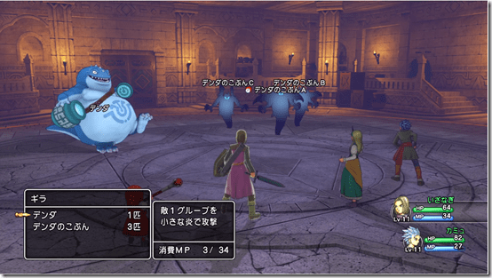 Last of all, it’s just such a happy thing to see the goofiness that I loved about the monsters in Rocket Slime be fully present here. Bosses stand on one leg, for seemingly no reason other than to match up with its concept art. Monsters waddle over to attack you, then slowly waddle back to their original spot. Hoodlums have a defeat animation where they accidentally throw their axe, which hits them on the head to knock them out.