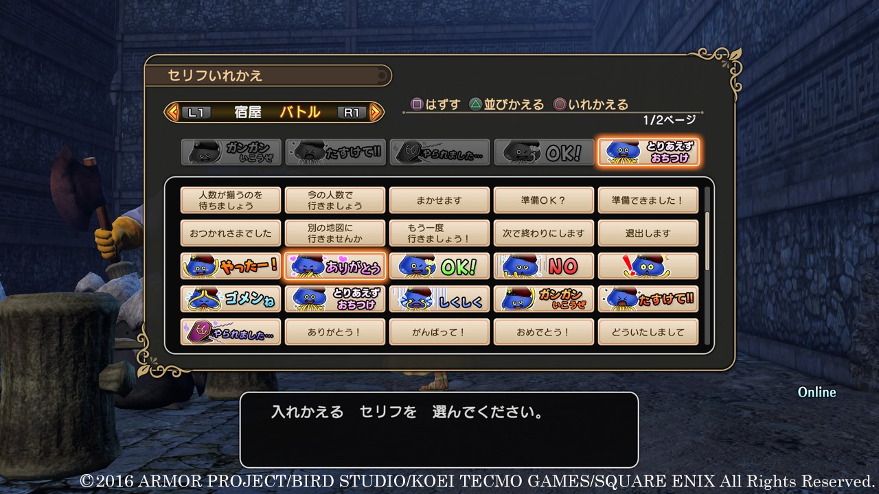 There are ways to set frequently used phrases and stamps for communicating with other players. The following are the characters from the first Dragon Quest Heroes will be available as as free downloadable characters, and they’ll be exclusive to the Space-Time Labyrinth: