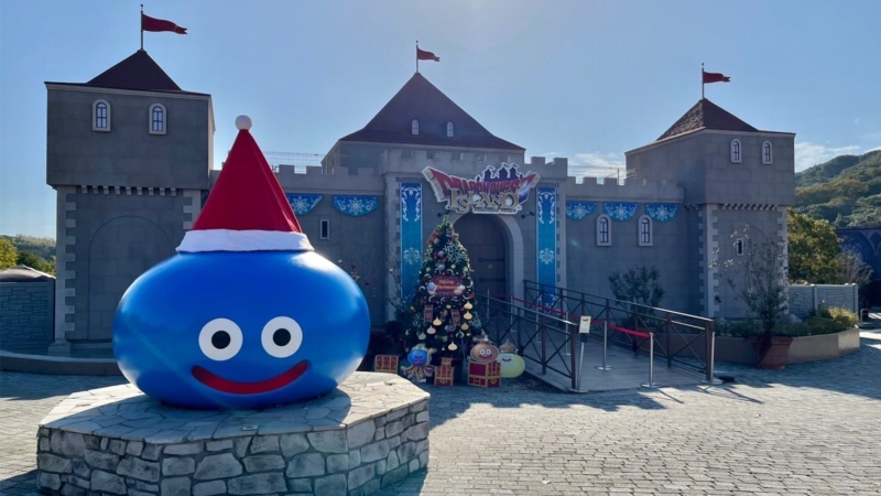 Hyogo prefecture’s Dragon Quest Island amusement park attraction is dressed up for the season. According to an announcement released via the locale’s official Twitter account, the area now sports winter-themed decor to suit the time of year. They’re calling the limited-time attraction the “Winter of Onokogard.” The decor and themed attractions include a giant Christmas Santa Slime and other festive Dragon Quest monsters, will run through January 9, 2023. The Christmas decor will come down a little bit earlier, though, with a scheduled close-out on December 25, 2022. Opened in 2021, Dragon Quest Island is a part of the “Nijigen no Mori” (“2D Forest”) portion of Hyogo’s Awaji Island Park. It’s designed to give visitors the experience of stepping into a world pulled straight from the RPG. When they visit, they’ll step through the castle gates, into the town of Onokogard. Onokogard is designed to look like the fantasy-medieval type of town reminiscent of the game, and is named after the mythical Japanese Onogoro Island (Awaji Island was once thought of as the “historical” Onogoro). Once inside, players can go on quests, fight monsters using a special “adventure card”, and eat. Certain grades of ticket include exclusive items, like a backpack designed to look like a Dragon Quest shield. Besides Dragon Quest Island, the Nijigen no Mori boasts various attractions based on anime and pop culture. These include a replica of Naruto‘s Hokage Rock and parts of Konoha village (including Naruto’s favorite restaurant, Ramen Ichiraku), and a zipline through Godzilla’s mouth. The Dragon Quest Island “Winter of Onokogard” winter and Christmas promotion lasts through January 9, 2023.