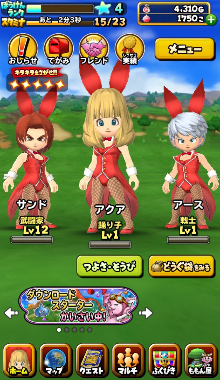 Square Enix’s latest smartphone game Dragon Quest of the Stars recently topped a million downloads, and it has already surpassed two million downloads earlier today. In celebration, they’re giving out bunny suits for all players.