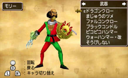 We get to see some combat action at the 6:20 mark of the video. They also comment on Morrie’s funny way of walking. Morrie uses the “Tiger Claw” weapon, which was seen in Dragon Quest X.