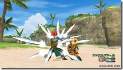 The Ranger uses bows, boomerangs, and axes. (Boomerangs and bows are new to Dragon Quest X.) Their "survival" skill gives them some recovery spells that restore HP and negate negative statuses. New skills let Rangers trick monsters into attacking each other and a swift strike called Wolf Attack.