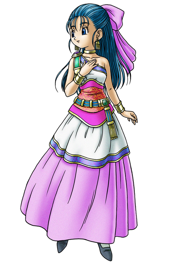 Hanafusa: “We made sure that she wasn’t ‘just a pretty girl’, but ‘a pretty girl with a standout personality’. In order to bring out her tomboyish side and differentiate her more from Nera, we changed her hair to be more tousled compared to the straight hair she has in DQV.” Yagi: “The freckles she has were also to enhance that image and to not make her just another pretty girl.” Hanafusa: “Her outfit is based on DQV, but if we were use it just like that in CG she wouldn’t look like someone who’d fight monsters, so we made it feel more like armor. The shape of Bianca’s cloak is quite special, with it tucked under her belt, then opening wide again. We worked to make sure the design wouldn’t feel incongruous with the rest of the design.”