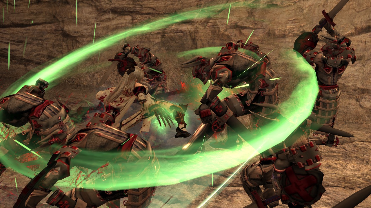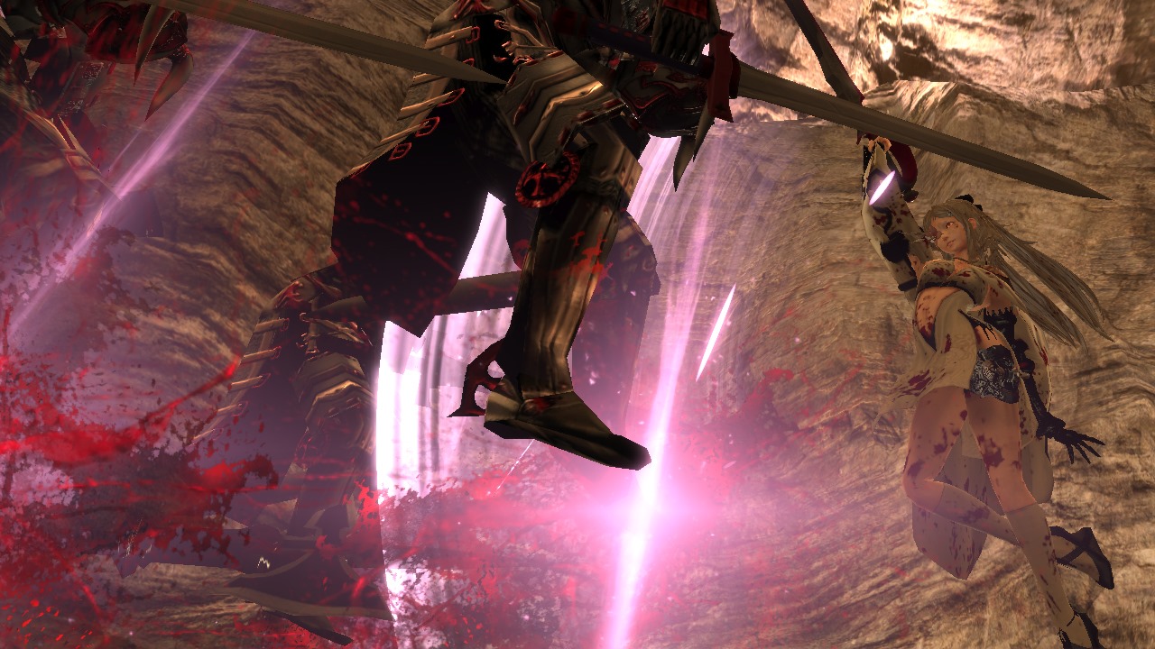 The sword a balanced weapon with effect forward slashes and horizontal range. The Sword can also launch enemies and it’s easy to connect attacks into combos which makes blood splash, the key to activating Zero’s Intoner powers.